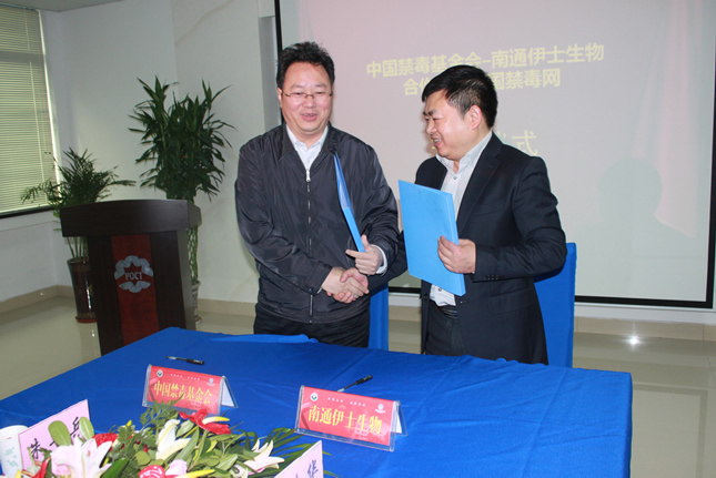 2013年12月7日上午,南通市伊士生物技術有限責任公司在伊士生物研究院會議室舉行了“中國禁毒基金會-南通伊士生物合作建設中國禁毒網(wǎng)簽約儀式”。中國禁毒基金會秘書長李憲輝先生,江蘇省公安廳禁毒總隊副總隊長陳紅淦先生,省公安廳和市公安局相關領導共7人出席了簽約儀式。